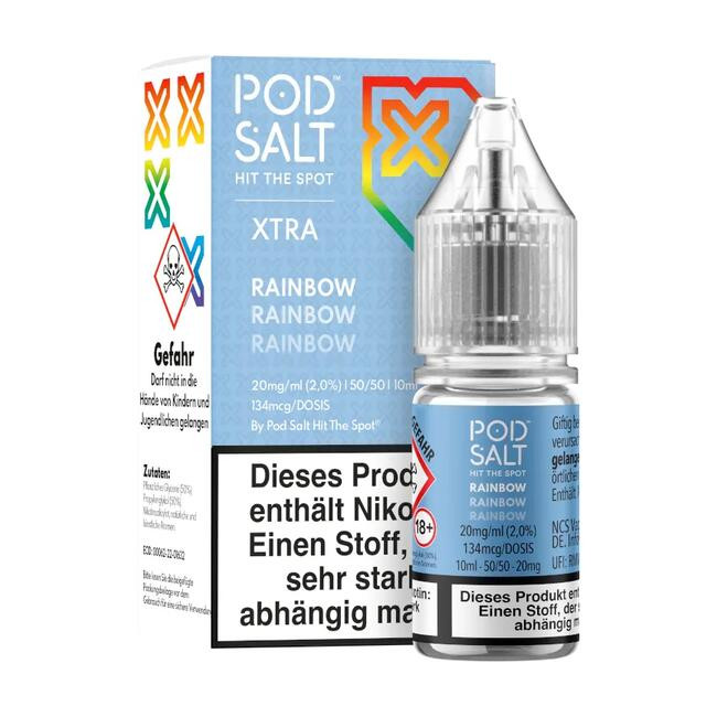 Wie schmeckt eigentlich ein Regenbogen? Bei Pod Salt ist man jedenfalls der Meinung, dass das bunte Phänomen nach Zuckerbomben schmeckt. Denn genau das bekommst du beim Liquid Rainbow – eine bunte Mischung fruchtiger Süßigkeiten.
